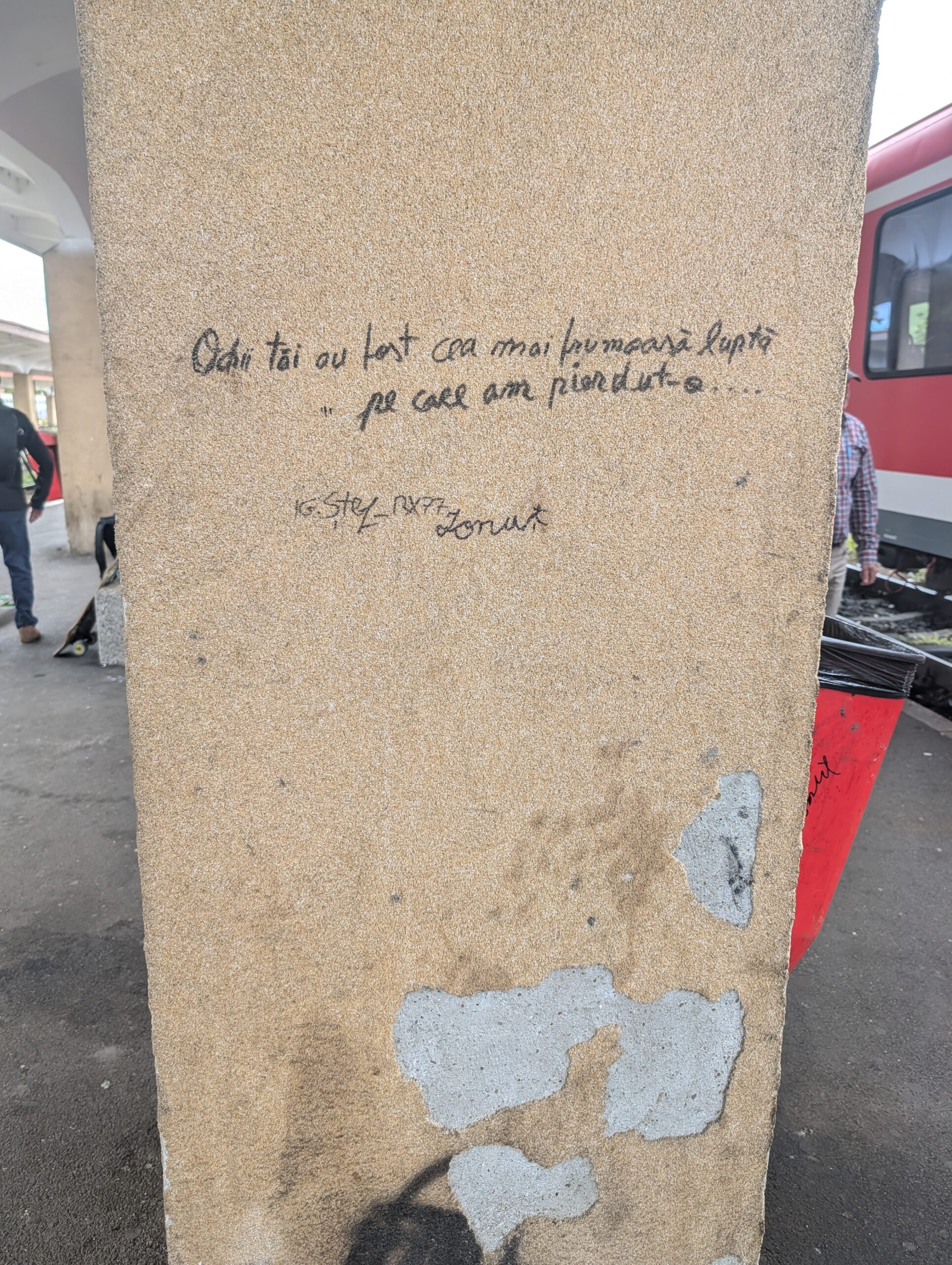 Am plecat din Bucuresti tarziu, pe la 10 asa din motive variate. Din pacate am pierdut trenul direct Ploiesti Sud asa ca am mers in vest si de acolo am luat un uber pana in sud. Aici am gasit aceasta incantatoare poezie a strazii.